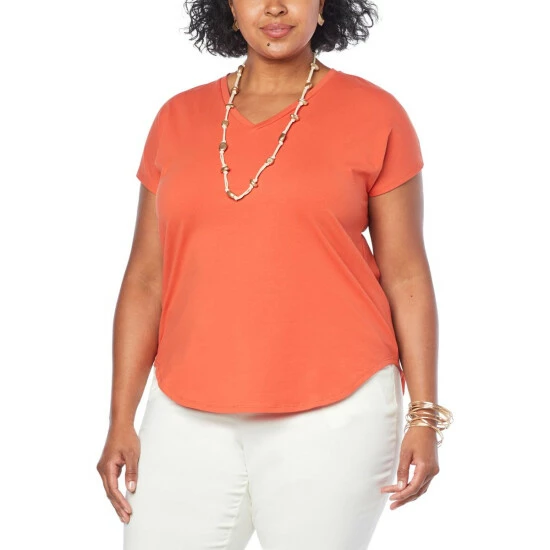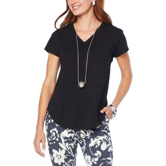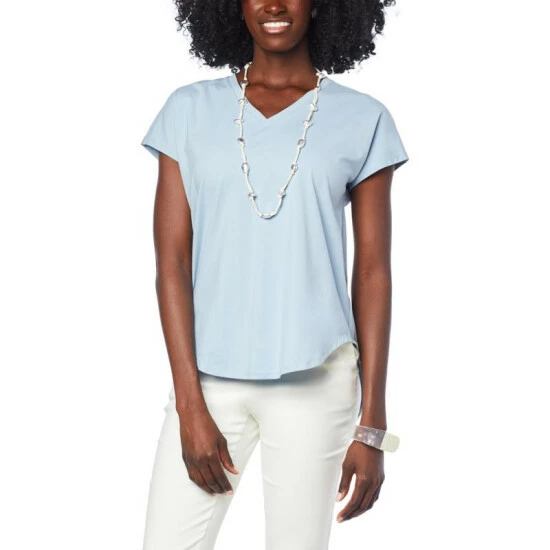 WynneLayers V-Neck Shirttail Scoop Hem Tee