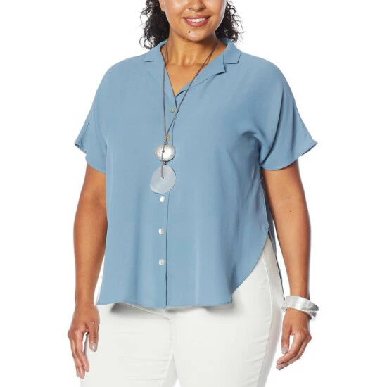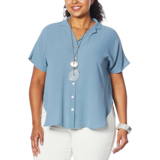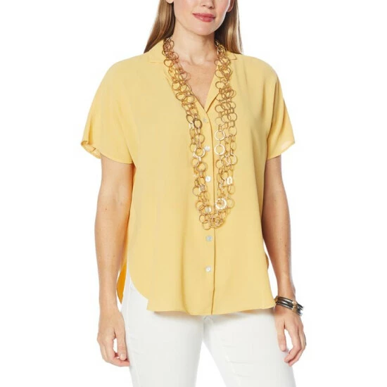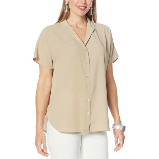 WynneLayers Washed Crepe Cap-Sleeve Shirt