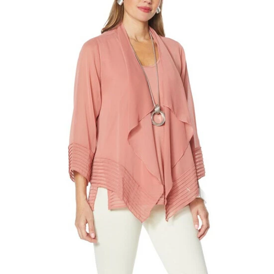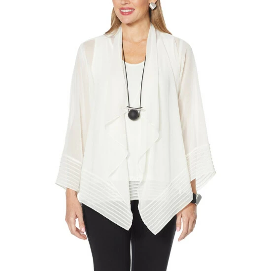 Add a lightweight layer of luxury to any of your warm-weather looks with this semi-sheer yoryu chiffontopper from WynneLayers.